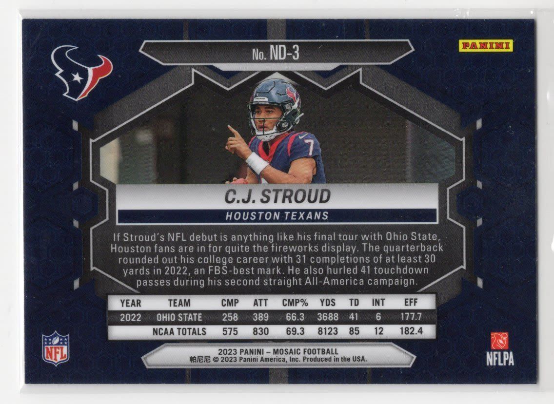 C.J. Stroud ROOKIE Card 2023 Panini Mosaic Rookie Card ND-3