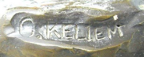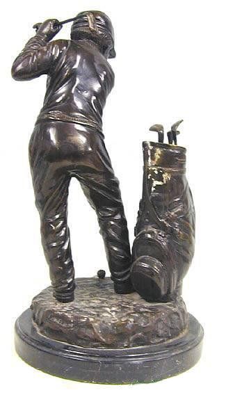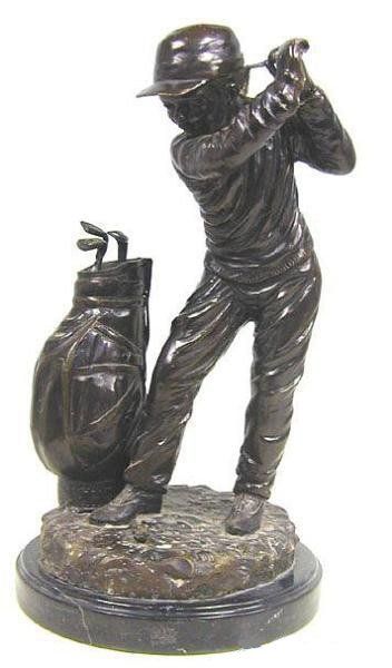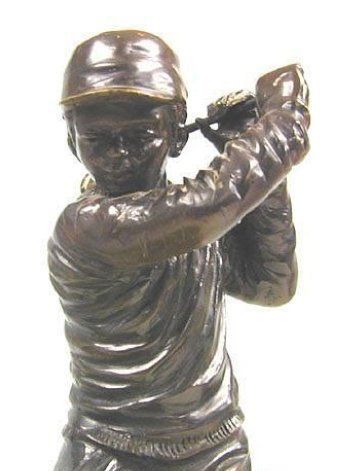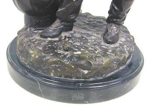 Dark brown patinated bronze (hollowed bronze filled with plaster or cement).
