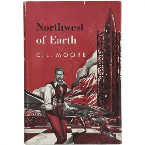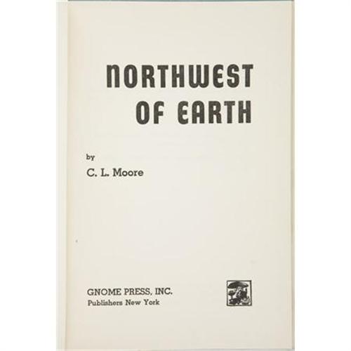 <B>C. L. Moore. </B></I><B><I>Northwest of Earth</B></I></B></I><B>.</B></I> New York: Gnome Press, Inc., 1954.<BR> <BR>First edition. Octavo. 212 pages.<BR><BR>Publisher's original green cloth with titles in red on the spine. A narrow stain along the lower edge of the front board with light shelf wear at the corners and edges. Contents surprisingly bright for this publisher. Dust jacket with a small closed tear at the top of the front panel, else light shelf wear. Very good. <I>From the Robert and Diane Yaspan Collection.</B></I><BR><BR><b>Shipping:</b> Books & Catalogs (<a target="_blank" href="http://www.heritageauctions.com/common/shipping.php">view shipping information</a>)