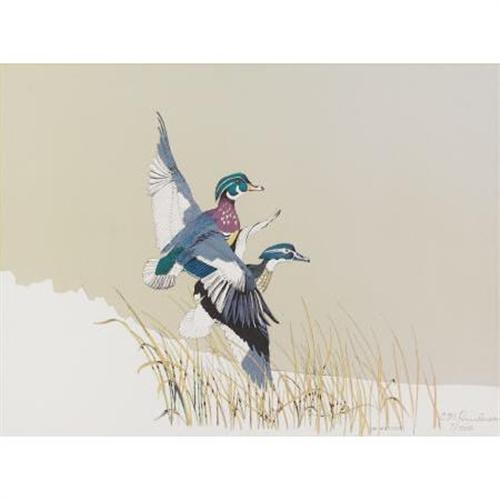 <B>C. M. Henderson (American, 20th Century)</B></I><BR><I>Ducks</B></I><BR>Print<BR>11-1/2 x 15-1/2 inches (29.2 x 39.4 cm)<BR>Ed. 7/1000<BR>Signed in pencil lower right:<I> CM Henderson</B></I><BR>Inscribed in plate lower right: <I>CM HENDERSON</B></I><BR> <B>Condition Report:</B> Normal signs of wear as appropriate with age. Matted and framed, not examined out of frame.<BR><BR><b>Shipping:</b> Framed - with Glass, Small (<a target="_blank" href="http://www.heritageauctions.com/common/shipping.php">view shipping information</a>)