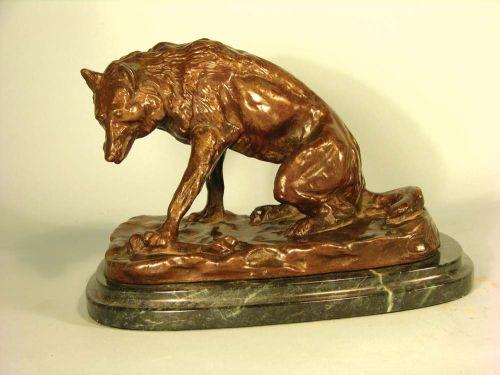 Recast of a C.M. Russell Bronze of a Wolf. Excellent Condition. 10 x 6 1/2 x 6 1/2 inches.