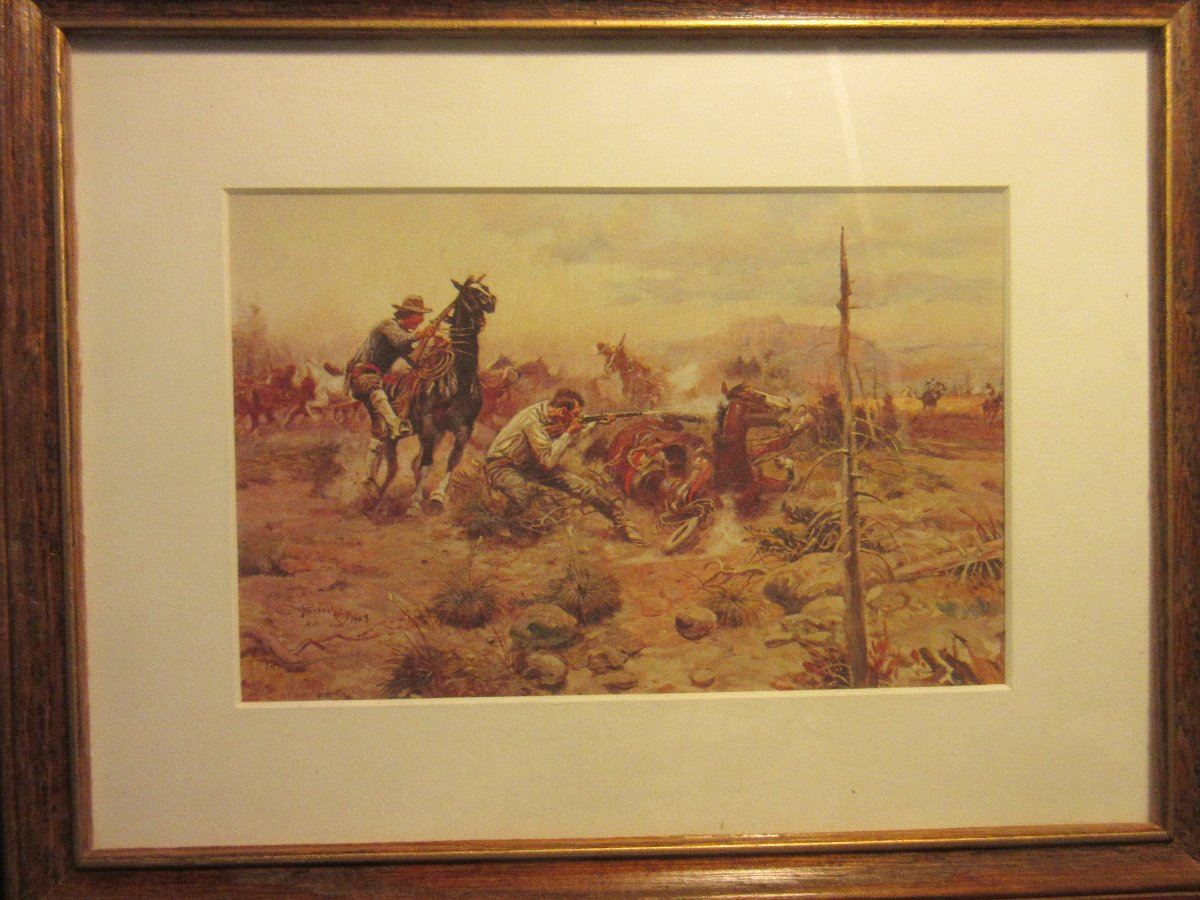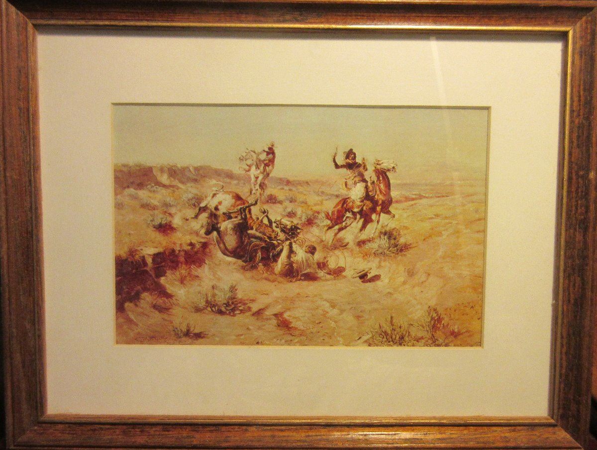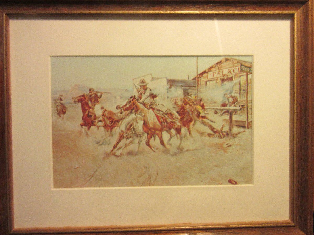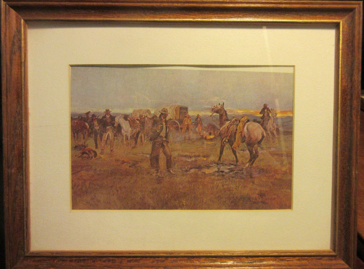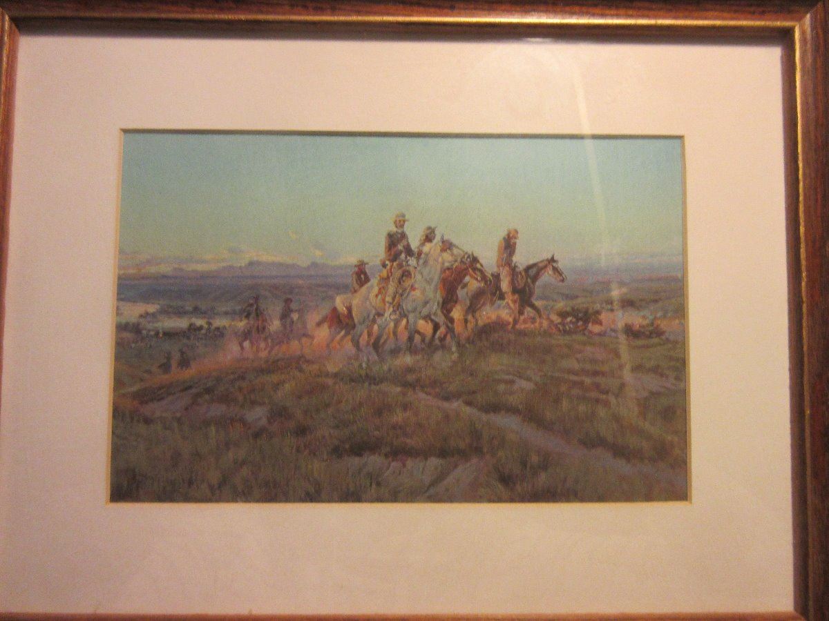 Lot of 6 C.M. Russell ( Artist of the American West ) Prints matted and framed - When Horse Flesh Comes High Smoke of A .45 - Rested - Men of the Open Range - When Horses Talk War There's a Small Chance for Peace - The Broken Rope