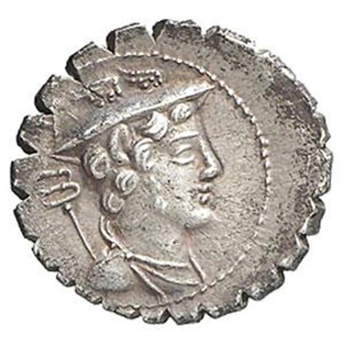 Repubblica Romana. C. Mamilius Limetanus. Denario, 82 a.C. D/ Busto di Mercurio a destra. Dietro, caduceo. R/ C. MAMIL. LIMETAN. Ulisse cammina a destra. Ai suoi piedi, il cane Argo lo riconosce. Cr. 362/1. B. 6. gr. 3.49 AG. SPL. Di grande qualit.