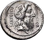 C. Memmius C.f. Denarius, circa 56 BC. Obv. C MEMMI C F QVIRINVS. Laureate head of Quirinus right. Rev. MEMMIVS AED CERIALIA PREIMVS FECIT. Ceres seated right, holding torch in left hand and corn ear in right; snake at her feet. Cr. 427/2. B.9. AG. g. 3.76 mm. 19.50 S. EF. Struck on a large flan and complete. Brilliant and superb. Repubblica Romana. Cr. 427/2. B.9. AG. g. 3.76 mm. 19.50 S.