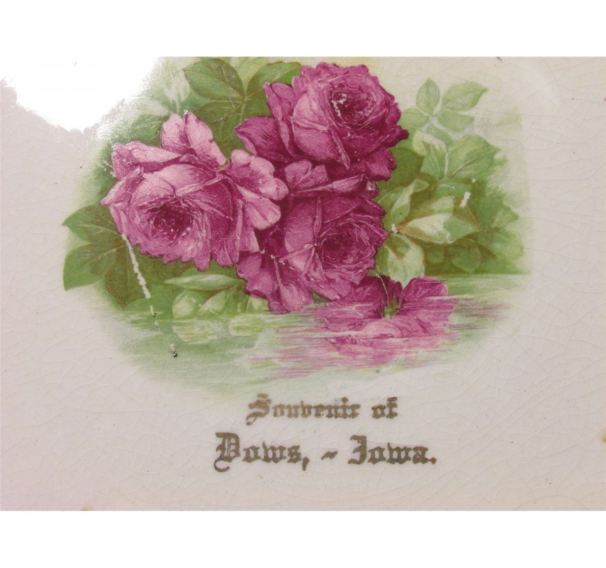 "C.P. & Co." China Saucer "Souvenir of/Dows, - Iowa." Roses in central design.