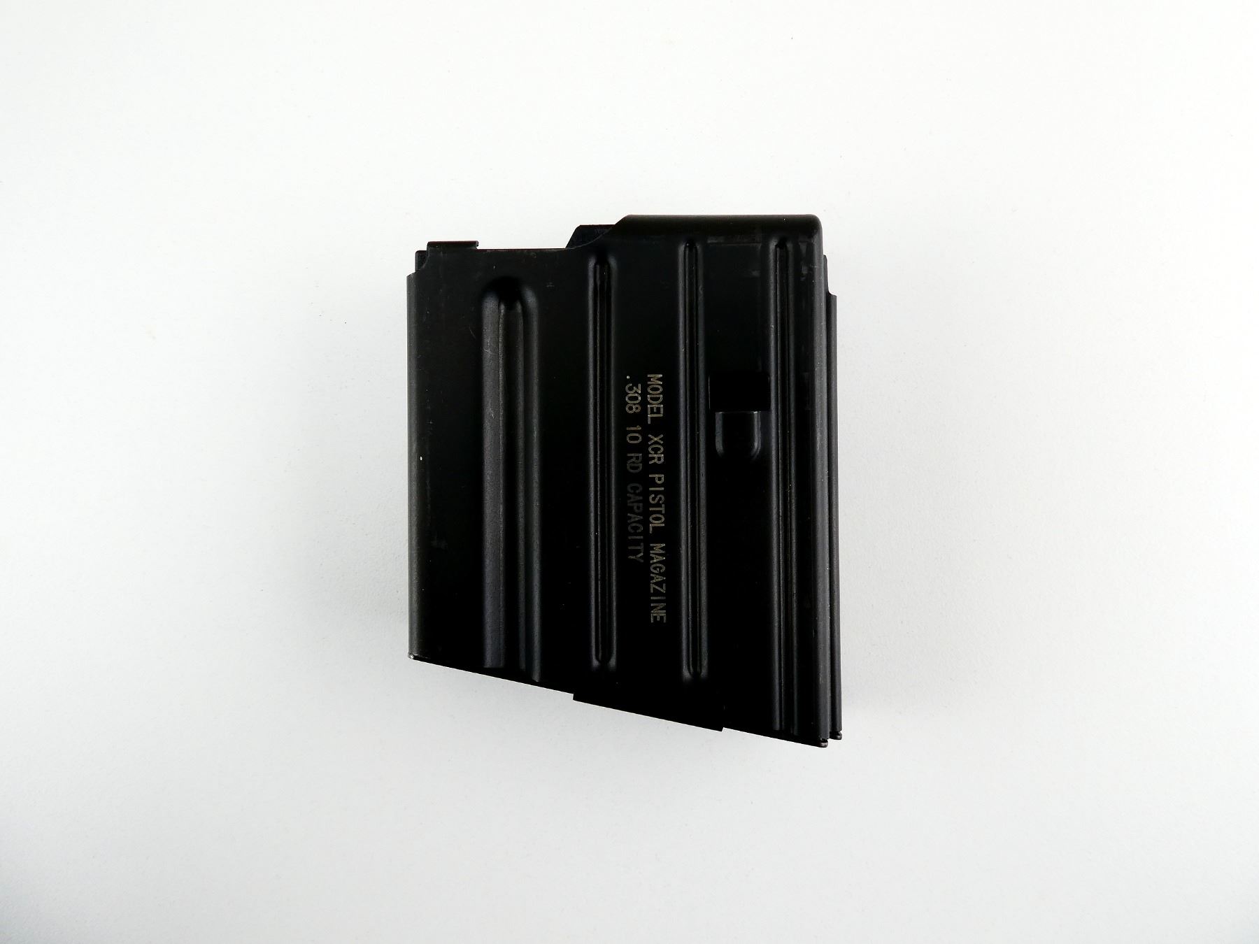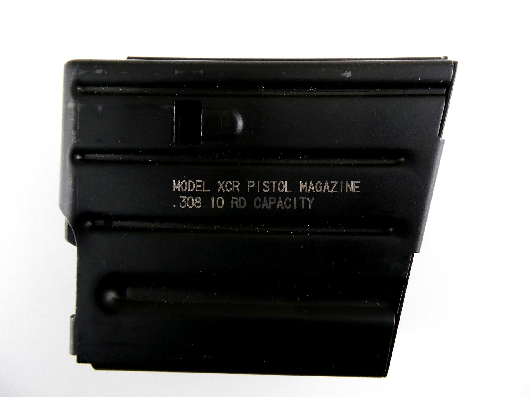 (1) .308 MAG, 10 RNDS, BLACK ALUMINIUM CONSTRUCTION, MARKED: "MODEL XCR PISTOL MAGAZINE, .308 10 RD CAPACITY", ETC. SEE PHOTOS. PAL REQUIRED.