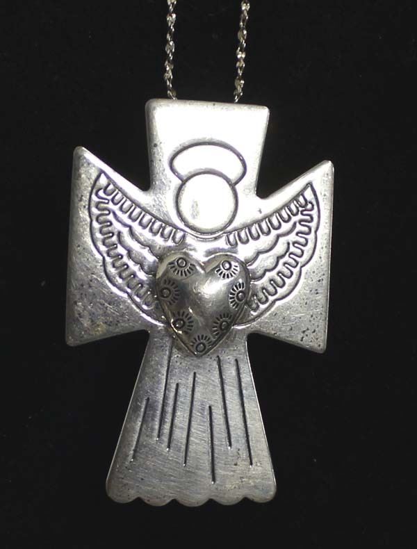 Carolyn Pollack Relios Sterling Silver Angel Cross Pin/Pendant Necklace, sterling chain measures 18''L end to end and pendant measures 1.75''L, hallmarked and stamped .925