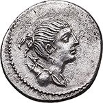 C. Postumius. Denarius, 74 BC. Obv. Draped bust of Diana right, bow and quiver over shoulder. Rev. Hound running right; spear below; in exergue, C. POSTVMI/TA ligate. Cr. 394/1a. B.9. AG. g. 3.76 mm. 18.50 EF. Struck on a very broad flan and in exceptional condition for the issue. Repubblica Romana. Cr. 394/1a. B.9. AG. g. 3.76 mm. 18.50