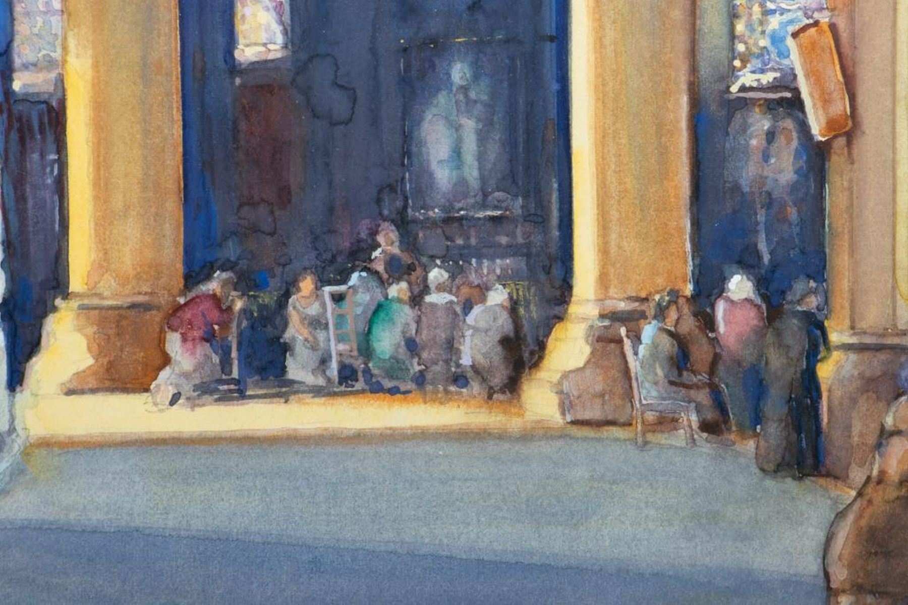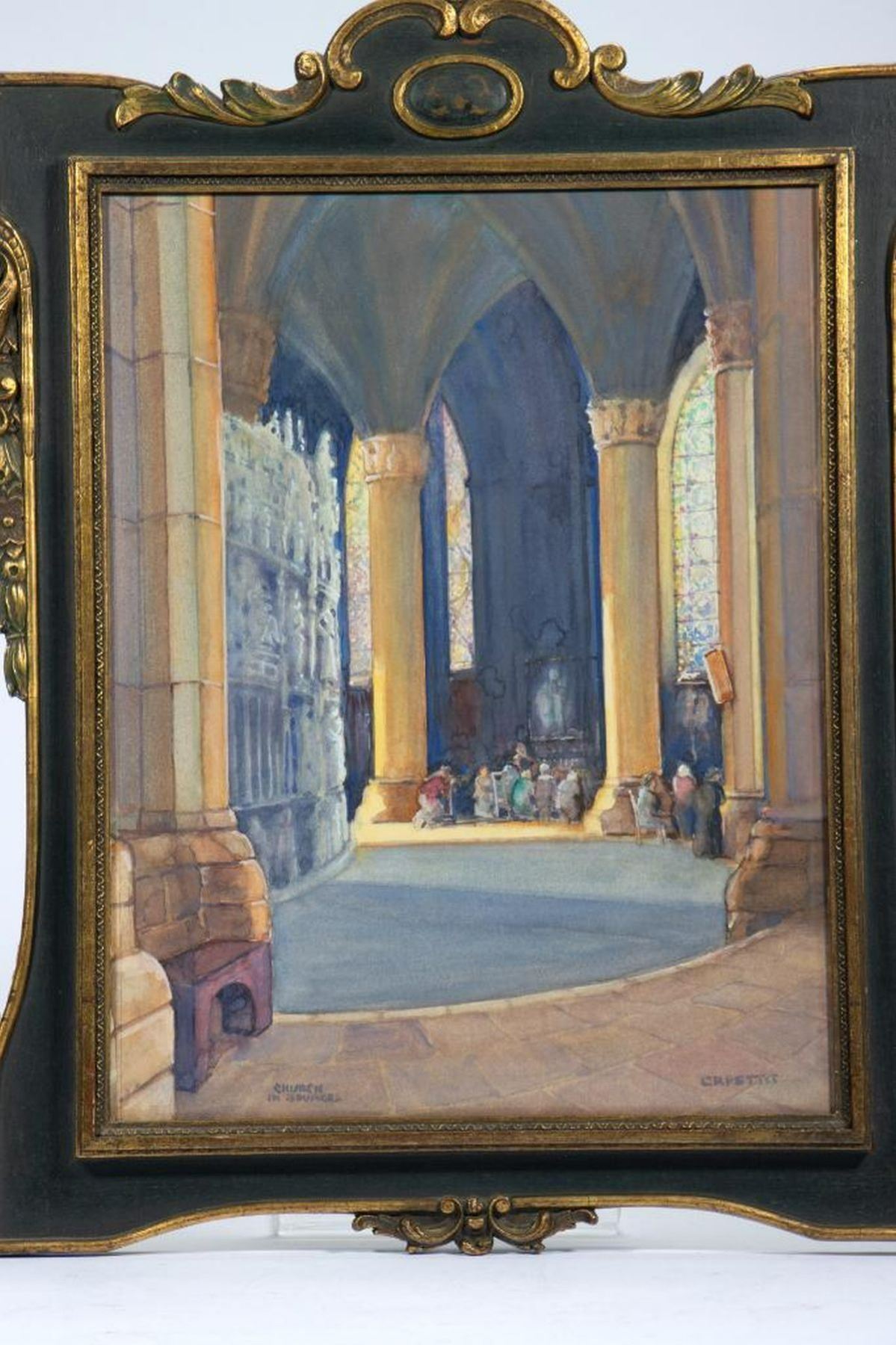 Title: Church in Bourges. Signed l/r: "CR. Pettit"; titled l/l: "Church in Bourges". Medium: Watercolor. Dimensions: 13 1/4 x 10 1/4 in. (image); 18 1/2 x 13 1/2 in. (frame). Condition: very good.