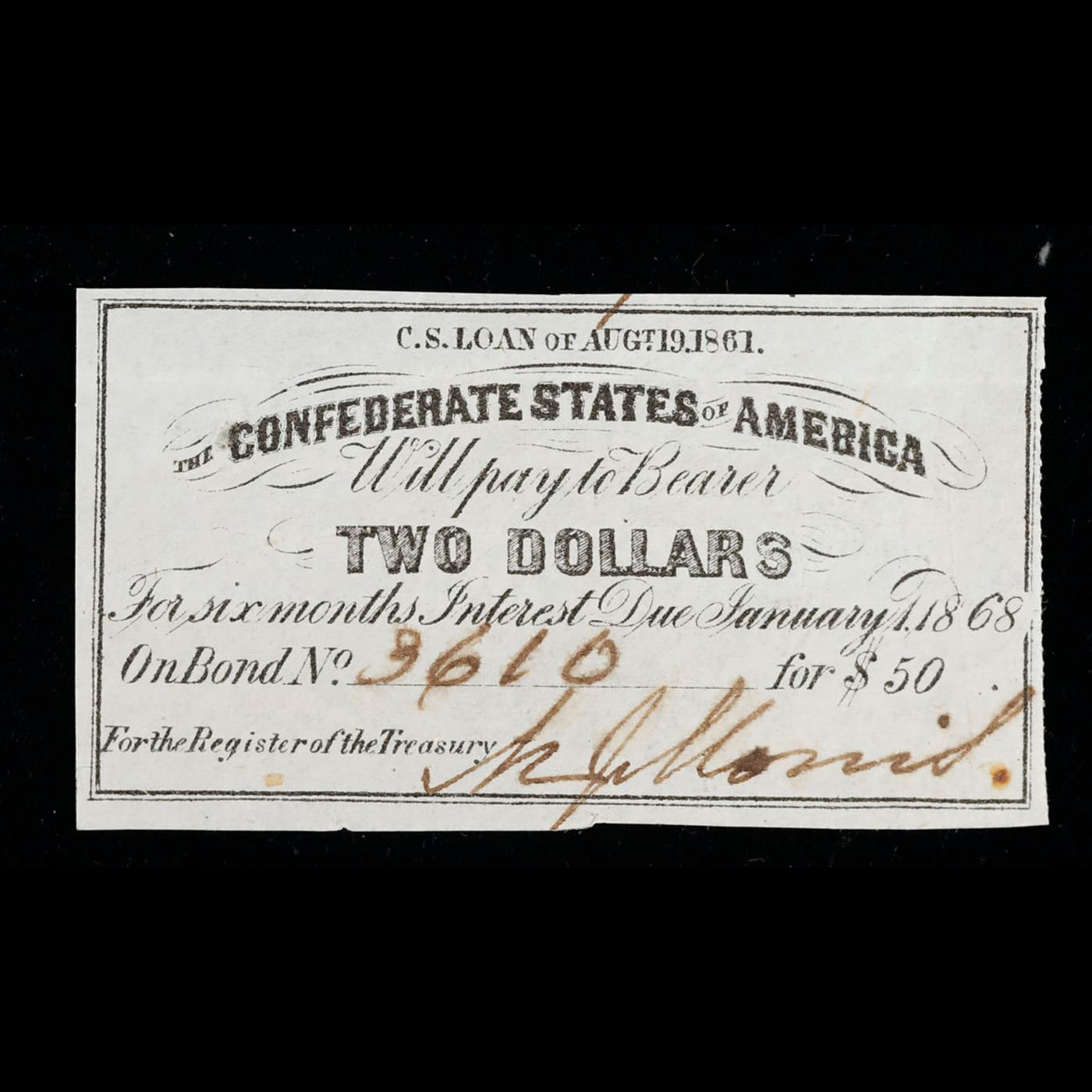 C.S.A. 2 Dollar Note Aug 19, 1861 Grades Select CU.