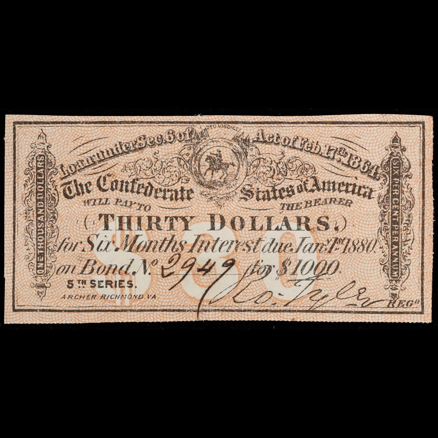 C.S.A. 30 Dollar Note Feb 17th, 1864 Grades Choice AU/BU Slider