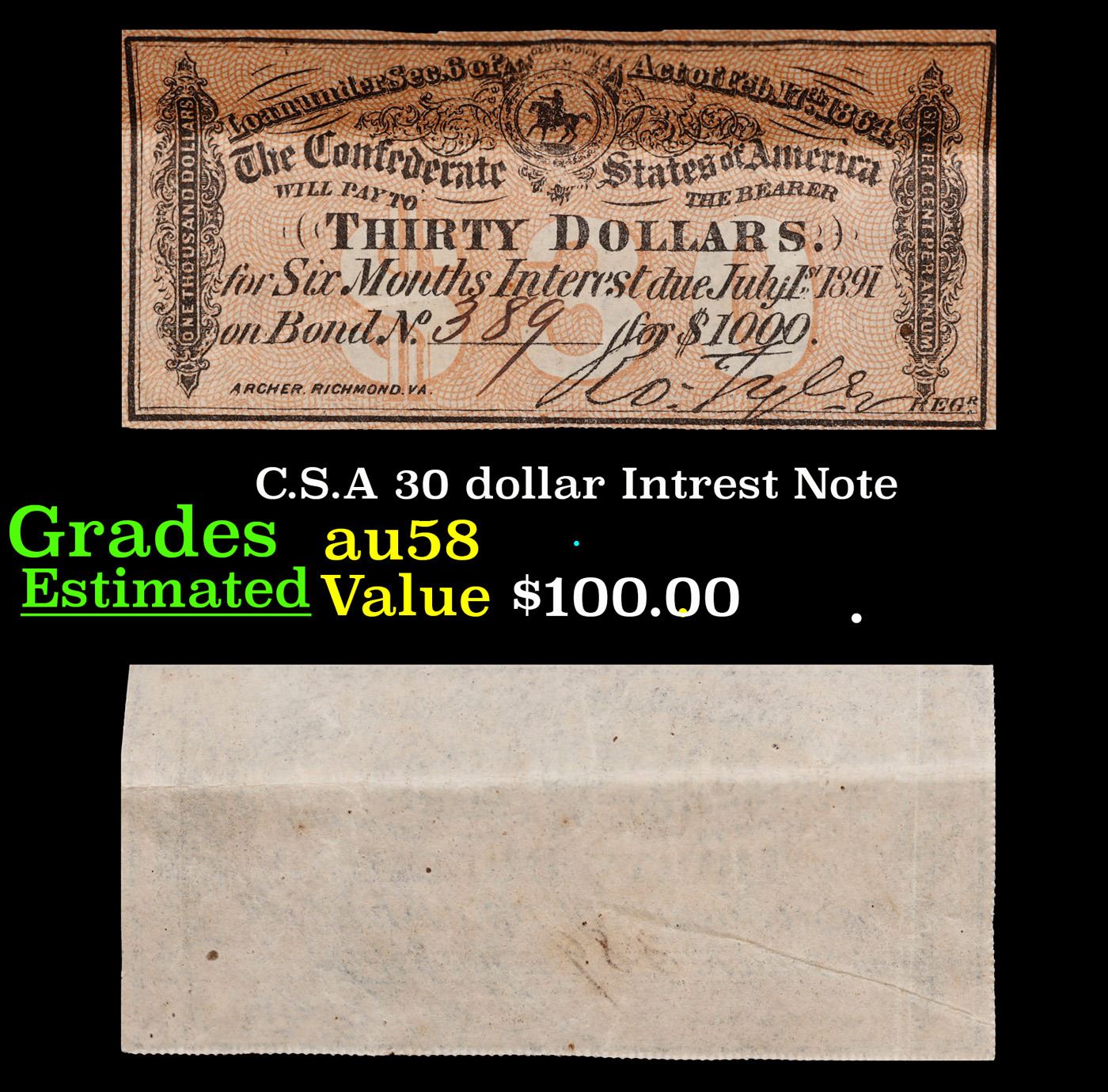 C.S.A 30 dollar Intrest Note Grades Choice AU/BU Slider.