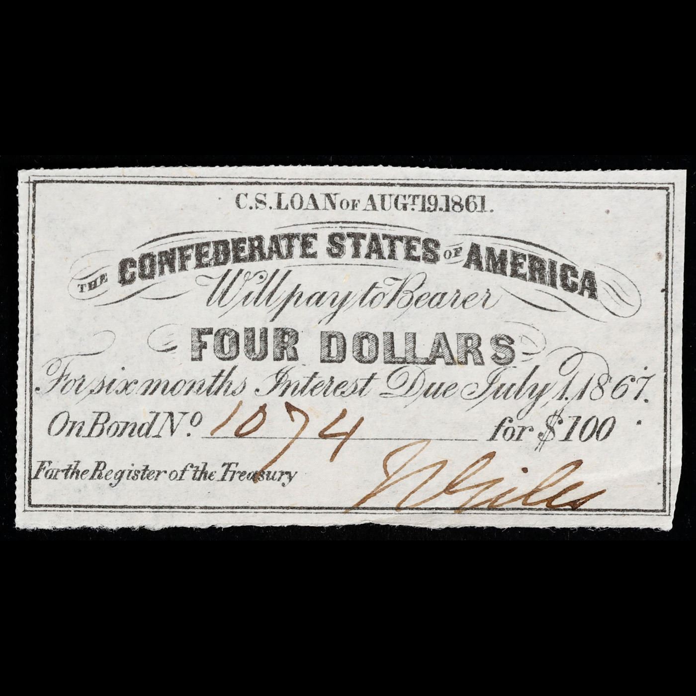 C.S.A. 4 Dollar Note Aug 19, 1862 Grades Select CU.