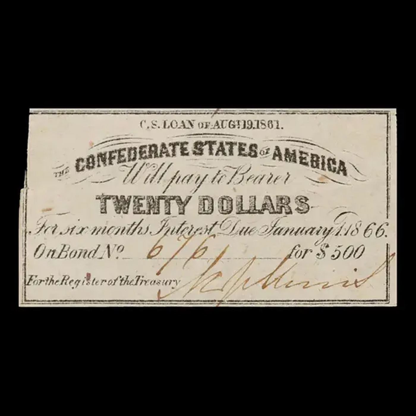 C.S.A. Aug 19th, 1861 $20 Intrest Note Grades Choice AU/BU Slider