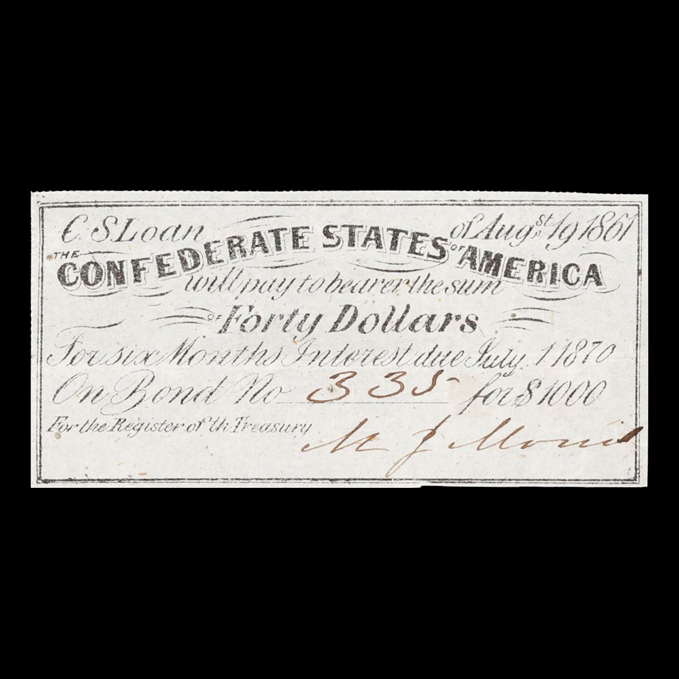 C.S.A. Aug 19th, 1861 $40 Intrest Note Grades Choice AU/BU Slider