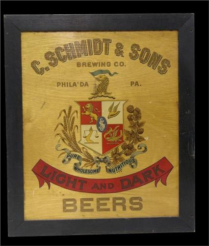 C. Schmidt & Sons Brewing wood sign Light and Dark Beers, Philadelphia Pa. 23"x27"