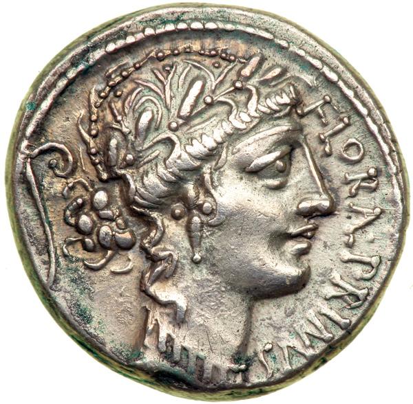 C. Servilius C.f., moneyer. AR Denarius minted at Rome, c. 57 BC. Head right of Flora wearing wreath of flowers; behind, lituus. Reverse: Two warriors approaching each other, holding upright short swords. Servilia 15; Cr. 423/1; Syd. 890. Well centered, Extremely Fine.