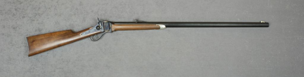C. Sharps Arms Co., Big Timber, Montana modern made single shot rifle in the style of a Sharps Model 1874, .45 cal., 34” octagon barrel, blue and case hardened finish, wood stocks, #74-2672. This gun is in overall like new condition showing little handling; approx. 99% + original finish, excellent bore, action, markings, and wood. Est.: $1,250-$2,500.