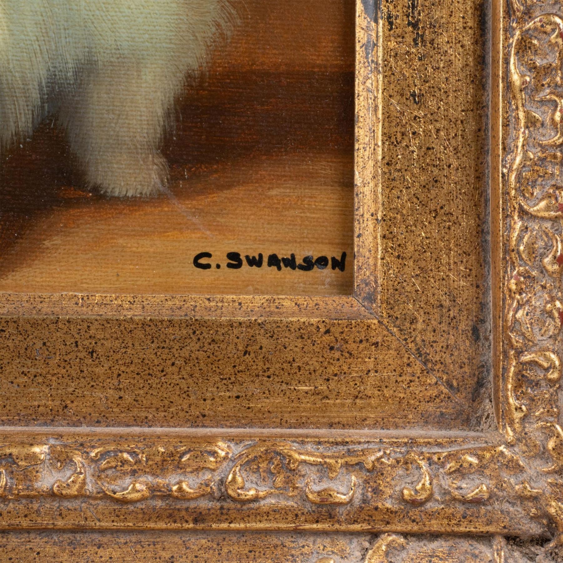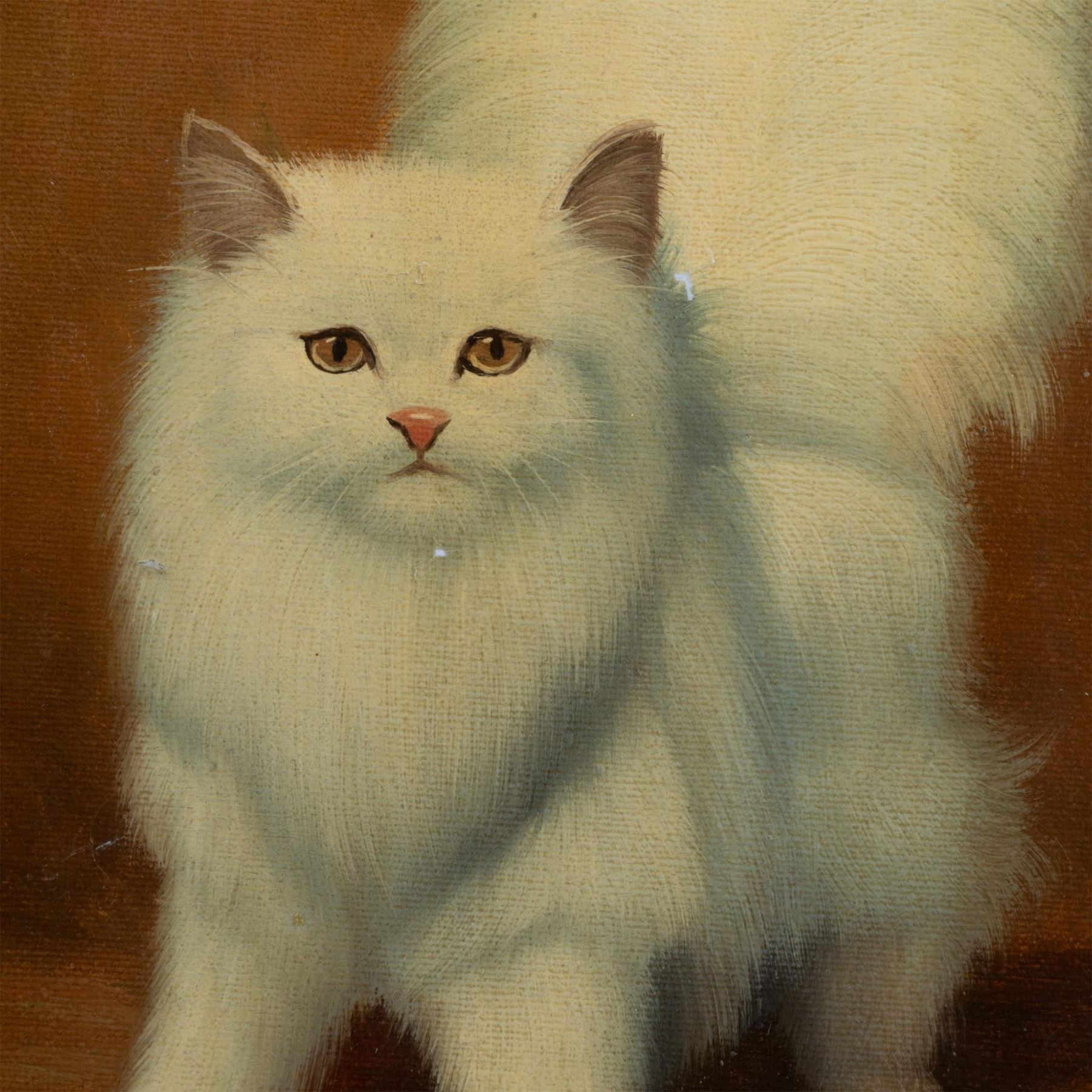 Adorable oil painting of a Persian cat on a gilded gold floral carved frame. Frame size: 15"L x 3"W x 17.25"H. Sight size: 8"W x 10"H.