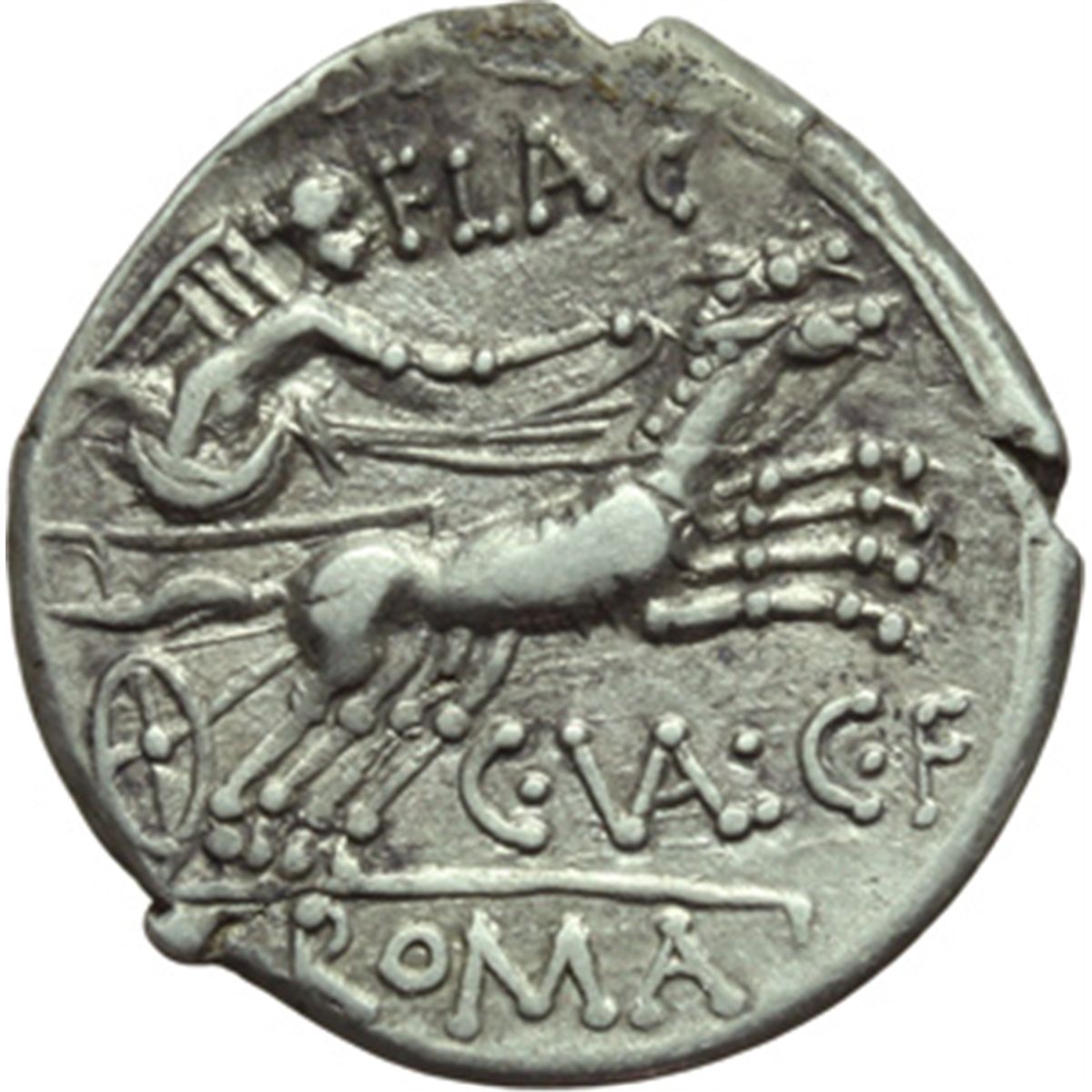 Repubblica Romana. C. Valerius Flaccus. Denario, 140 a.C. R/ Cr. 228/2. B.7. AG. g. 3.64 mm. 20.00 qSPL.