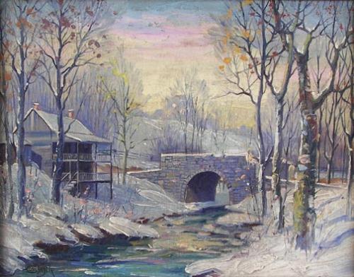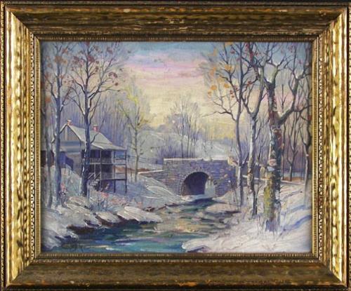 C.W. Fryer, Oil on Canvas, House in Winter Landscape, 11 1/4" x 14 1/4", signed lower left, Est $200 - $400