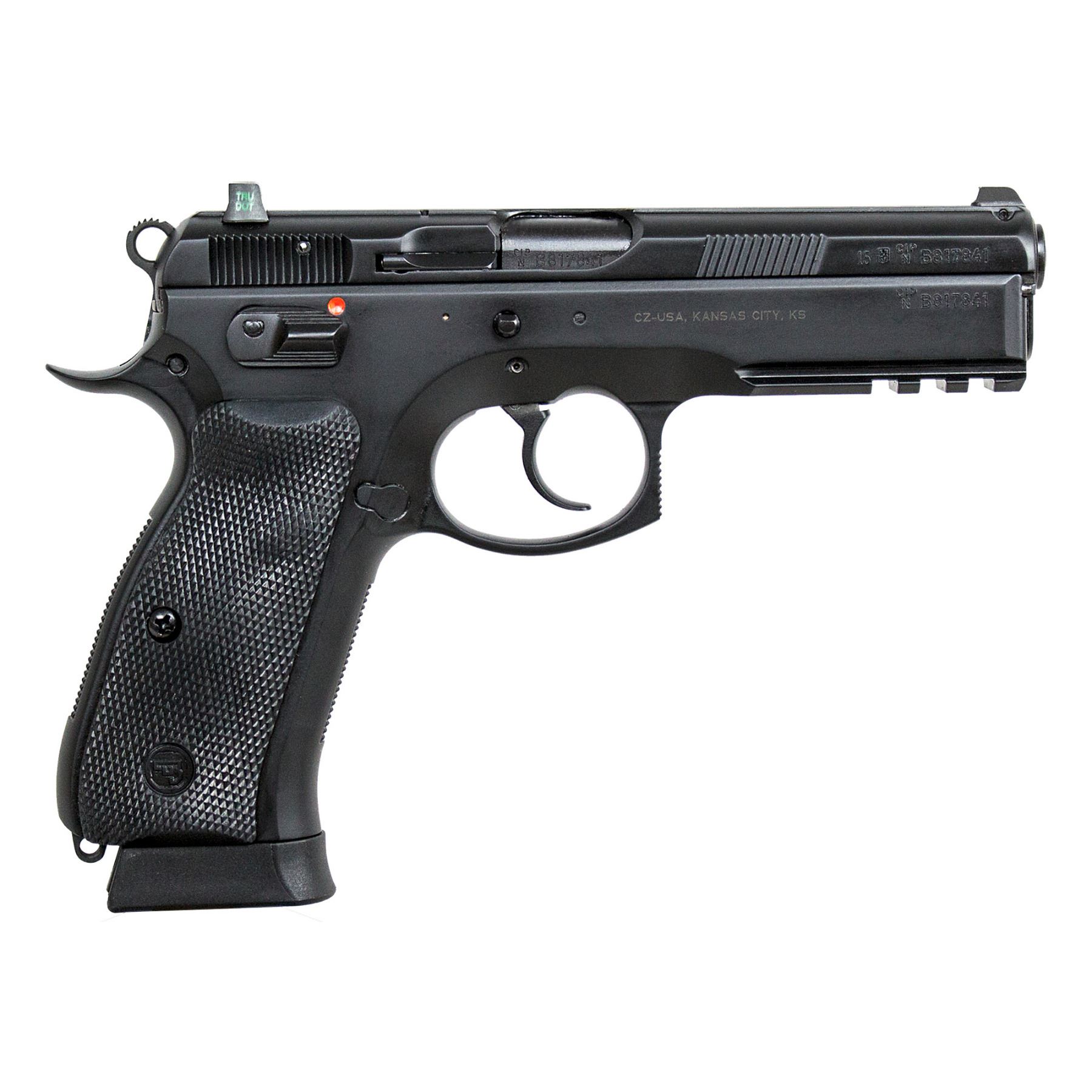 8.1" Overall, Steel Frame, Black Polycoat Finish, # 91152 Fixed Tritium Night Sights, Safety, Rail, Beavertail, Czech republic