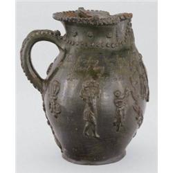 Dunántúl, 1841, mázas cserép, rátétes díszítéssel, "A Szur Szabó ifjú társaság korsója, Nms Halász Ádám atyamester, Sípos Károl öreg dékán....." felirattal, m: 38 cm