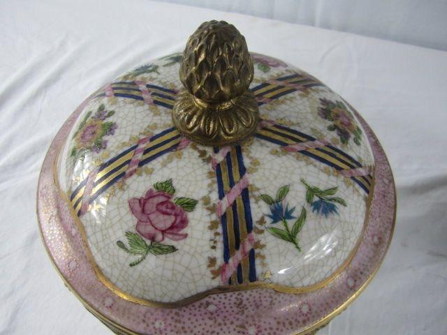 With ormolu ring and pineapple top. Excellent condition. Measures 10" tall. Estimate $200 - $400