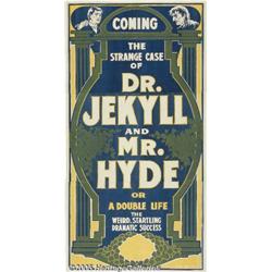 <B>The Strange Case of Dr. Jekyll (National Print-Chicago, 1890)</B></I> Theater/Movie Poster (41" X 81"). This large format poster might well have been used for both the popular touring stage play and the motion picture made in 1908, which was based on the play by Thomas Russell Sullivan. Actually, research reveals that the movie was really just a filmed version of a performance of the play. Fine+ condition on Linen.