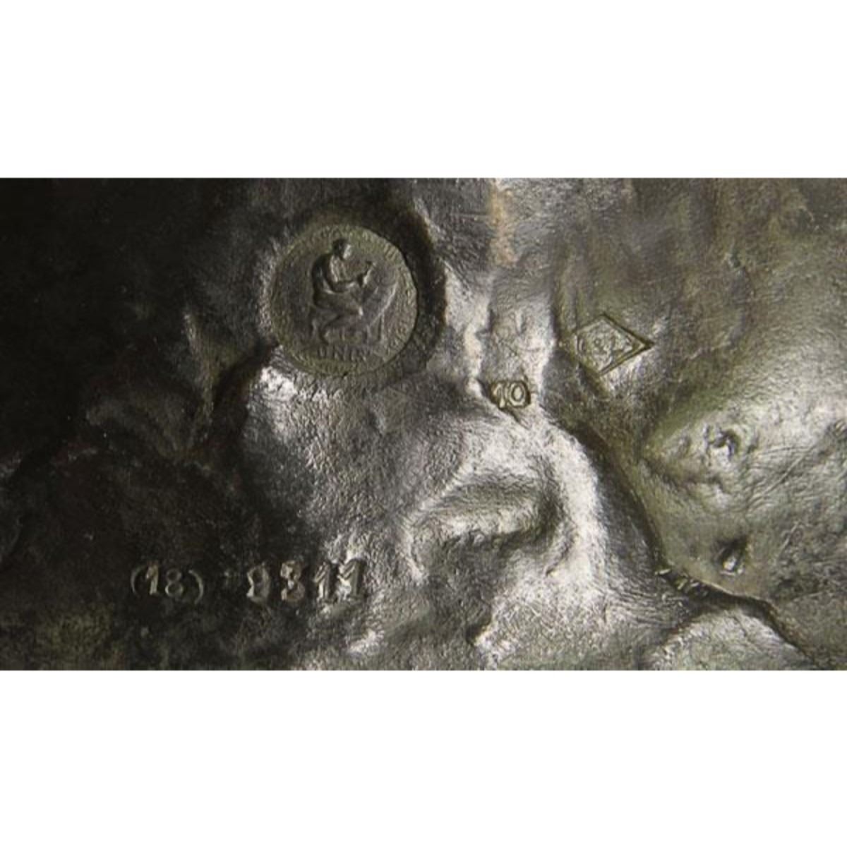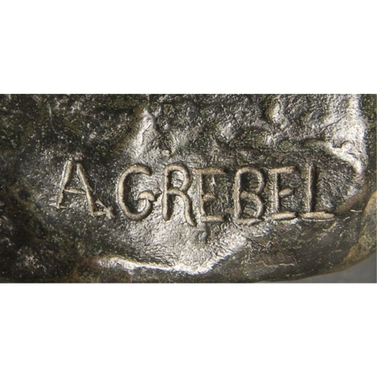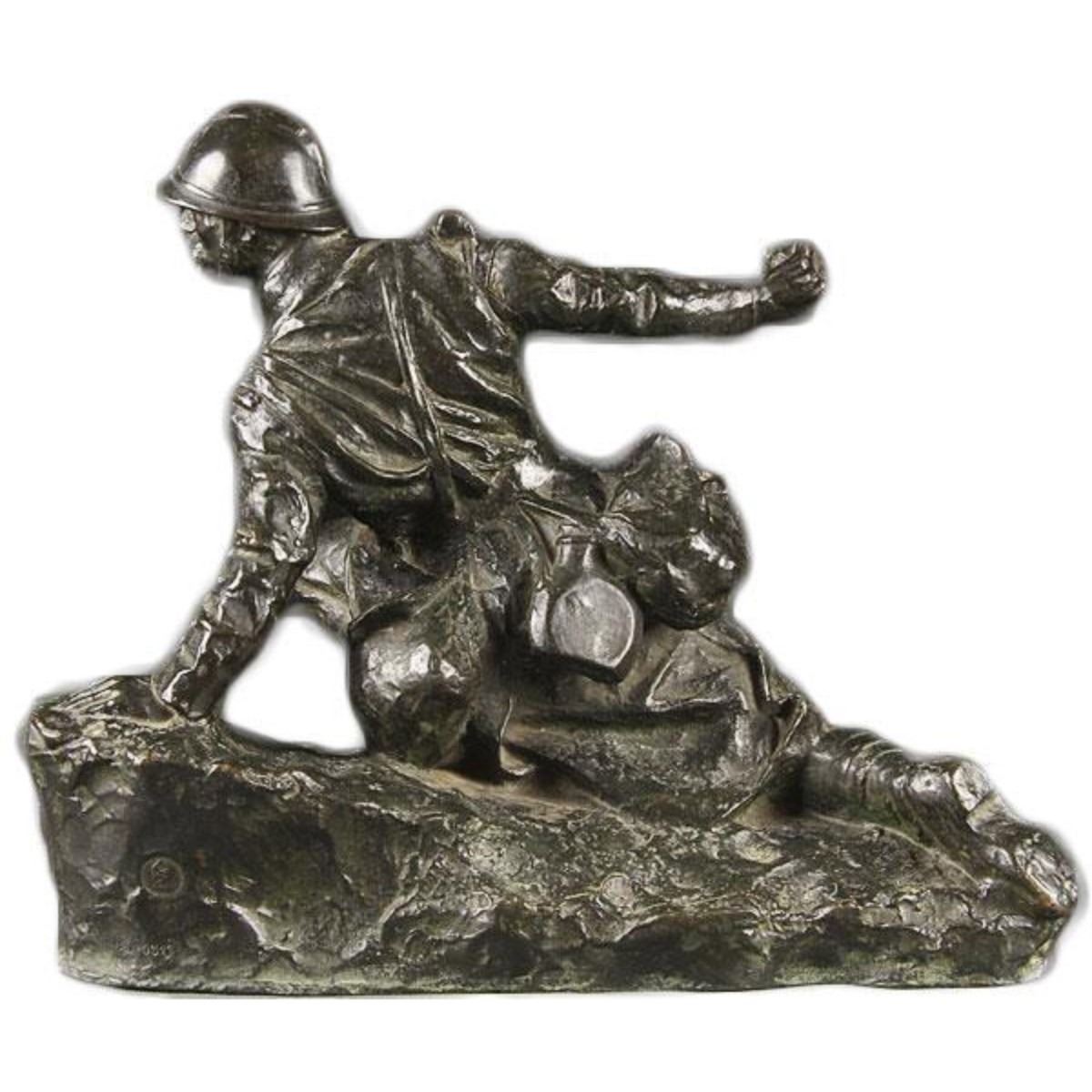 Signed Alphonse Grebel ( American 1885-1968 ) " In the Trenches" circa 1918. bronze with greenish brown patina, inscribed on base ~ A. Grebel ~ with foundry mark. Height 9 1/2".