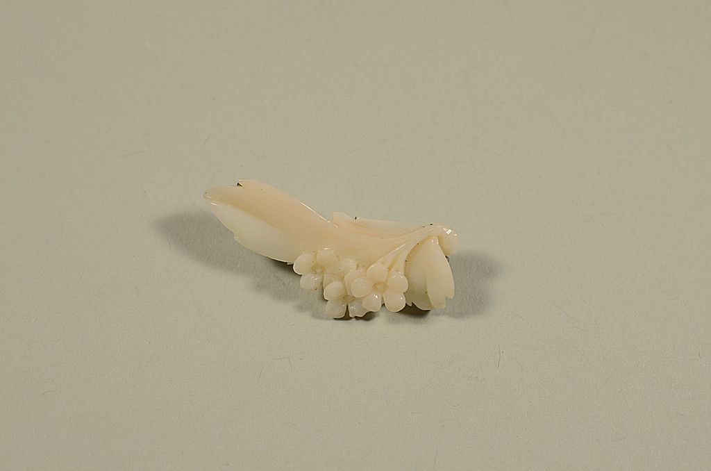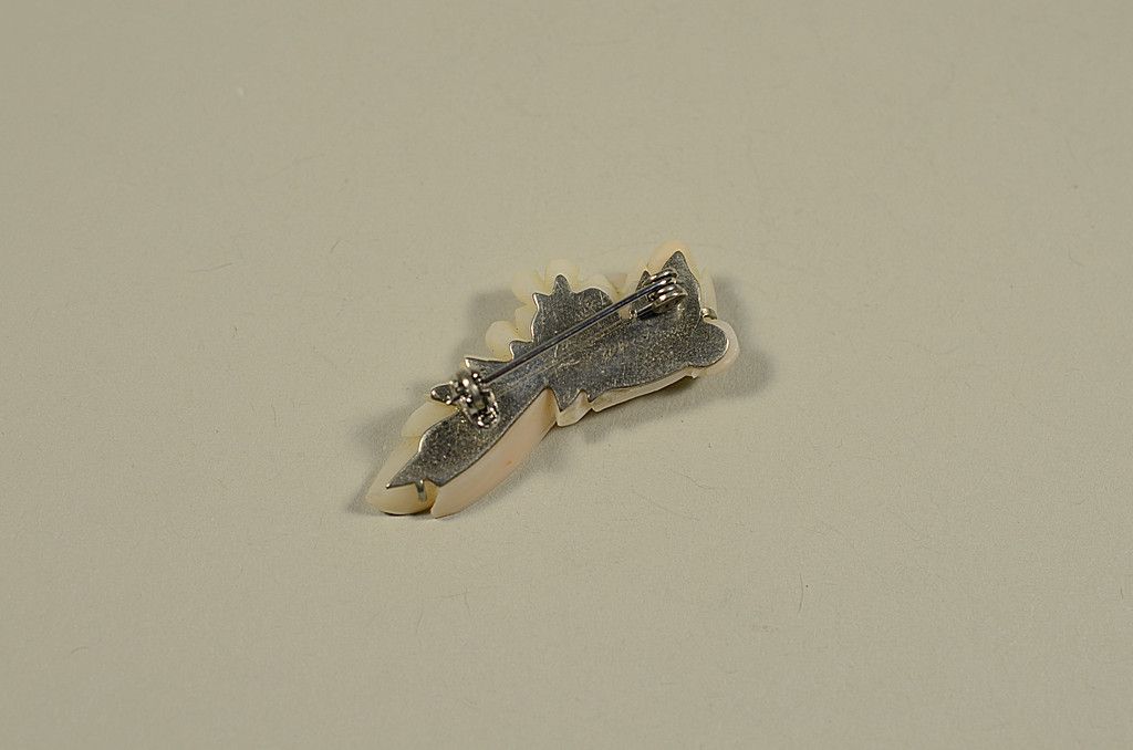 C1920 Antique Silver Mounted Brooch - Angel Skin Carving, Flowers