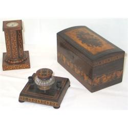 C19th floral tunbridgeware domed-top rectangular tea-caddy, 7.6ins. wide (see illustration). Est.£80/120