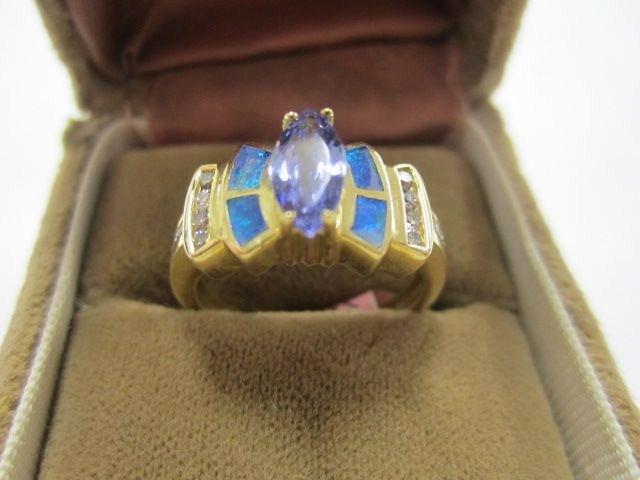 C28-1 14K TANZANITE, OPAL & DIAMOND RING