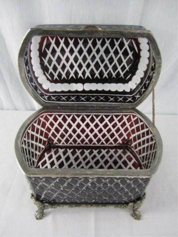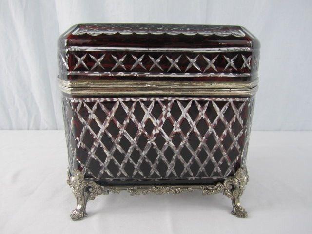 Silvered metal framing on the base and feet. 20 th Century. Measures 9" tall x 10 1/2" wide x 7 1/2" deep. Estimate $600 - $900