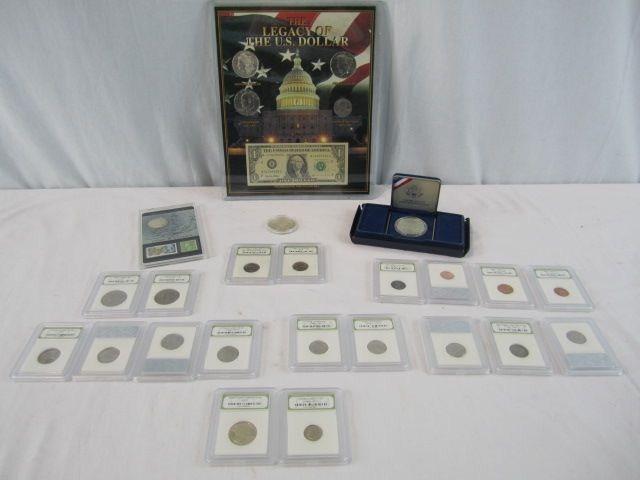 Legacy of the US Dollar, Benjamin Franklin Coin & Stamps Set, US Constitution Coins, 2008P James Monroe, 1913 Indian Head Buffalo Nickel, 2006D North Dakota, 2006P South Dakota, 1982S Roosevelt, 1976D and 1978S Washington's, 20 Dollar Coin,