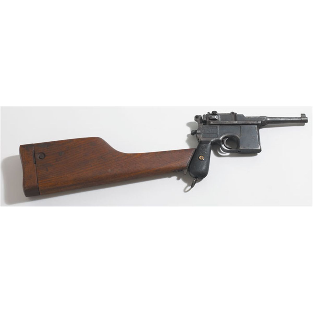 An extremely rare I.R.A. C96 Mauser handgun also known as the “Peter the Painter”, complete with wooden stock or holding case. Serial number "432671" dating this gun to circa 1919. With maker's mark of the Oberndorf Mauser Weapons Factor and Crown U Mauser acceptance marks.