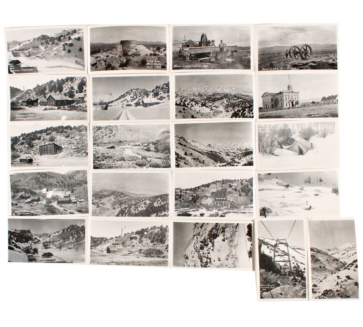 Lot of 21 Masonic photo reprints measuring 3.5 x 6," showing the boarding houses, school house, various town views, the mill, mountain scenes and the tram tower. Rare content and all photos are clear and in excellent condition. HKA#63745