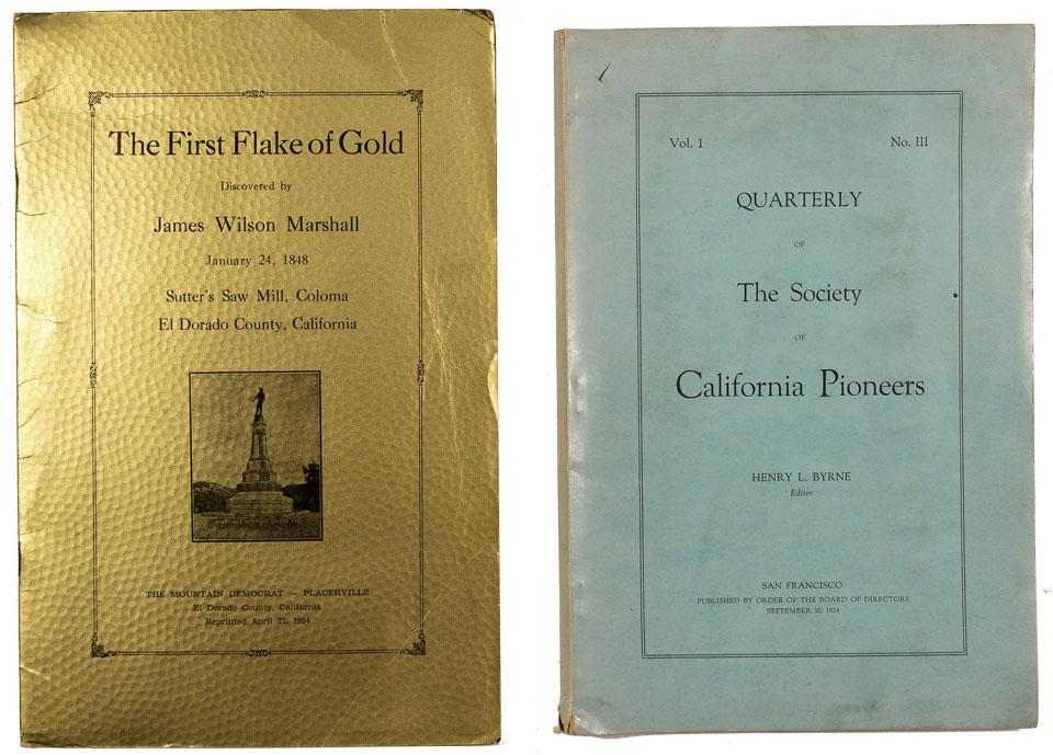 Lot of 2 Journals. 1) Vol. 1 No. III. The topic of the entire issue is the Gold Rush and the people who were there at the time James Marshall discovered gold.. Complete with errata page and corrections. Dedicated to Frances Fairchild by the article’s author, Philip Baldwin Bekeart. Fine condition. Ninety-seven pages. 2) The First Flake of Gold, by Philip Baldwin Bekeart. Signed by author and dedicated to Frances Fairchild. Also contains a typed letter on Bekeart’s stationary to Miss Fairchild at her home address in Placerville. Excellent condition.