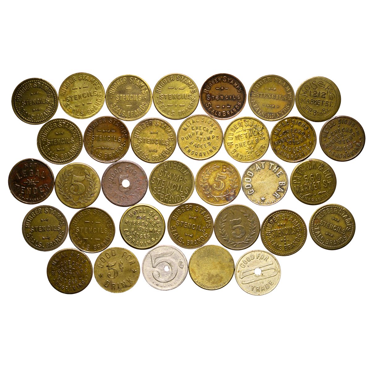 Lot of 33 various tokens. - Weber Collection