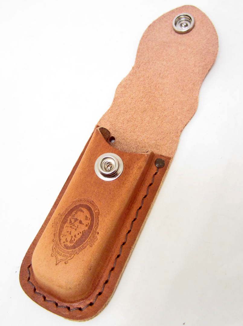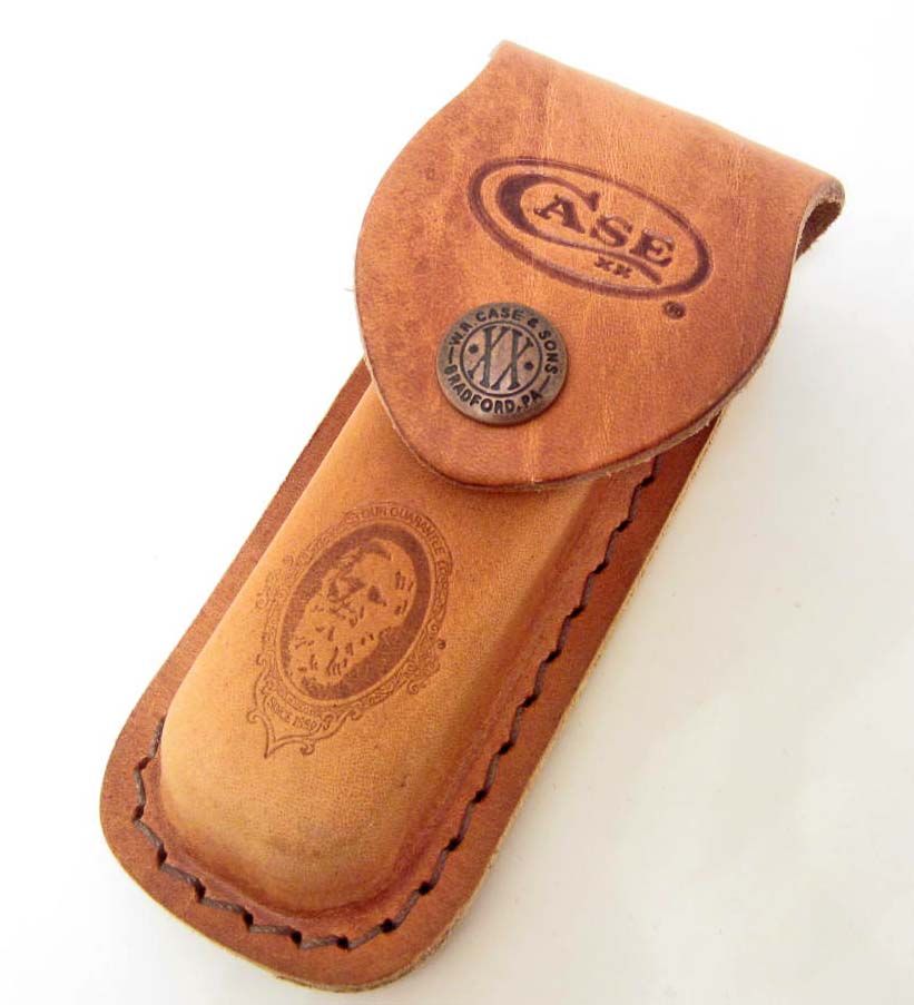 Case Medium Job Case Sheath. Brown leather construction with stamped Job Case logo. Fits folding knife up to 4 1/2" closed.