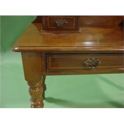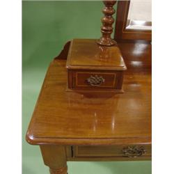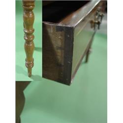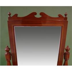 CABINETMAKER SHERATON MAHOGANY DRESSING TABLE. Line inlay decoration. Beveled mirror. Two handkerchief drawers over two drawers. Dovetailed drawers. 62" H to top of mirror, 44" W, 20.5" D