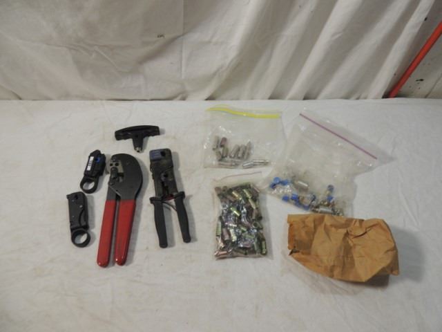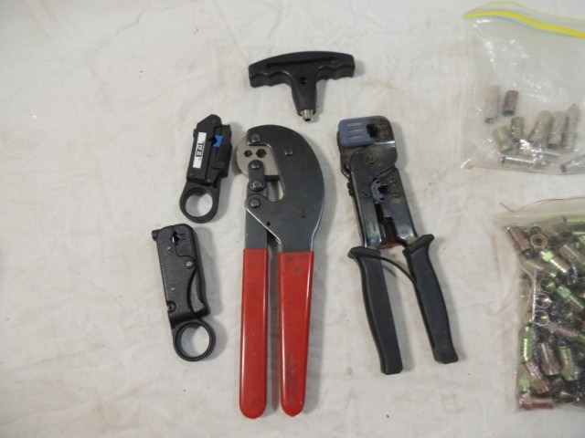 SEVERAL CRIMPING TOOLS, CABLE ENDS, AND MORE AS SHOWN. ALL FOR ONE MONEY.