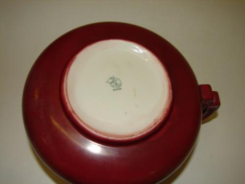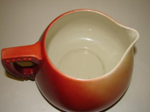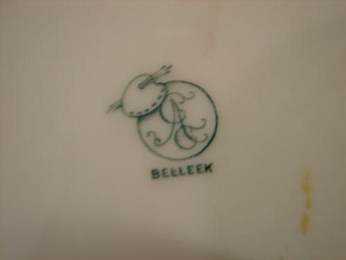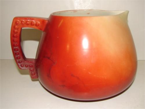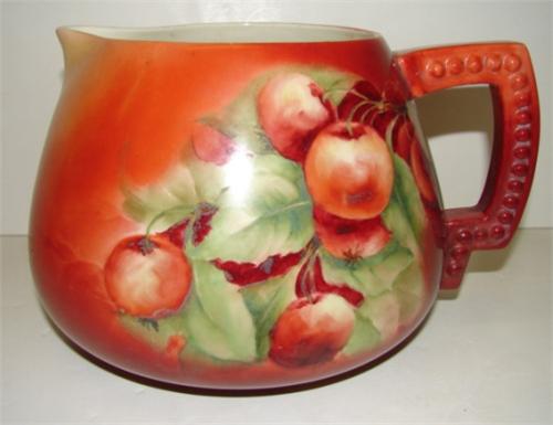 CAC AMERICAN BELLEEK PORCELAIN CIDER JUG. Decorated with hand painted fruit scene. Marked on bottom. Excellent condition. 5.75” H