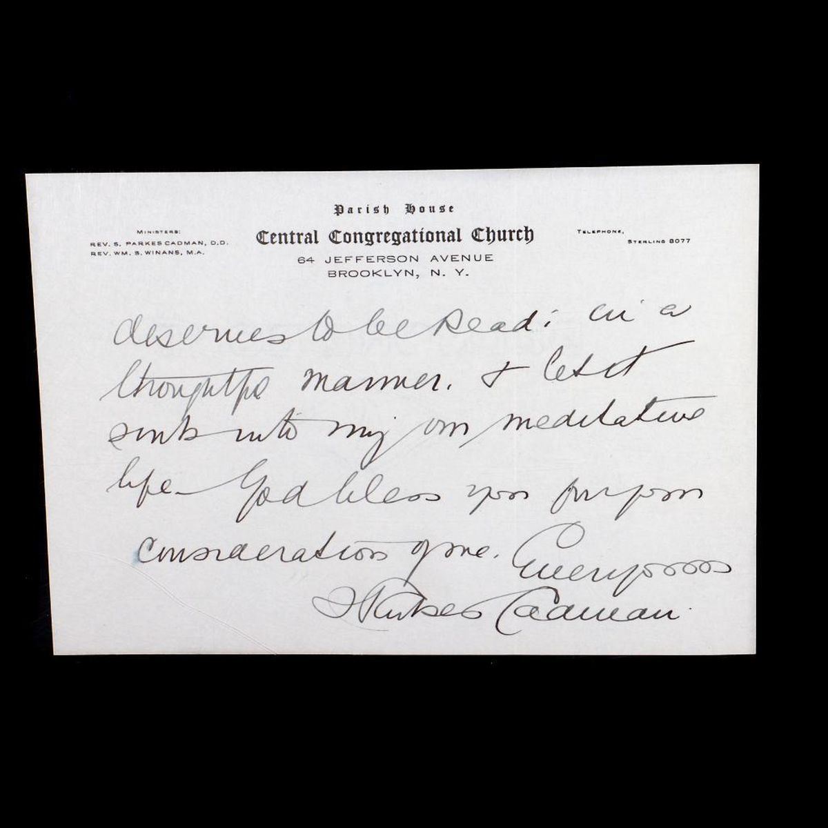 CADMAN, SAMUEL PARKES, 1864-1936; [CENTRAL CONGREGATIONAL CHURCH].