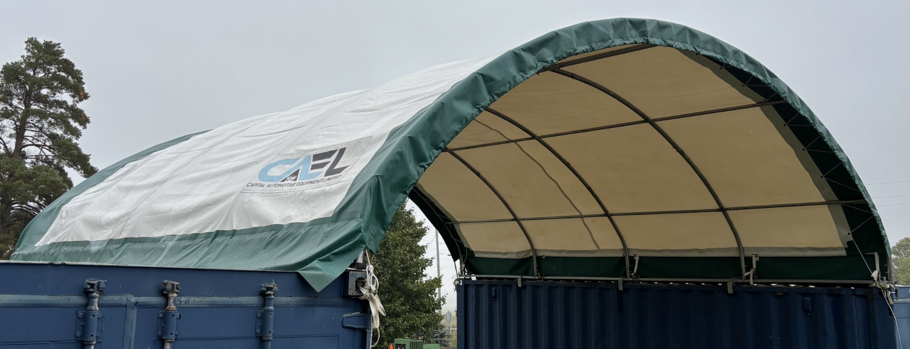 NOTE: DESIGNED TO SIT BETWEEN TWO SEA CONTAINERS. PURCHASER REMOVES.
