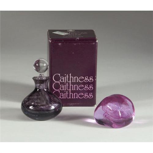 CAITHNESS GLASS: 2 pieces of Caithness Scottish glass, one paperweight ''Pebble'' and one stoppered perfume bottle, 3'' each.