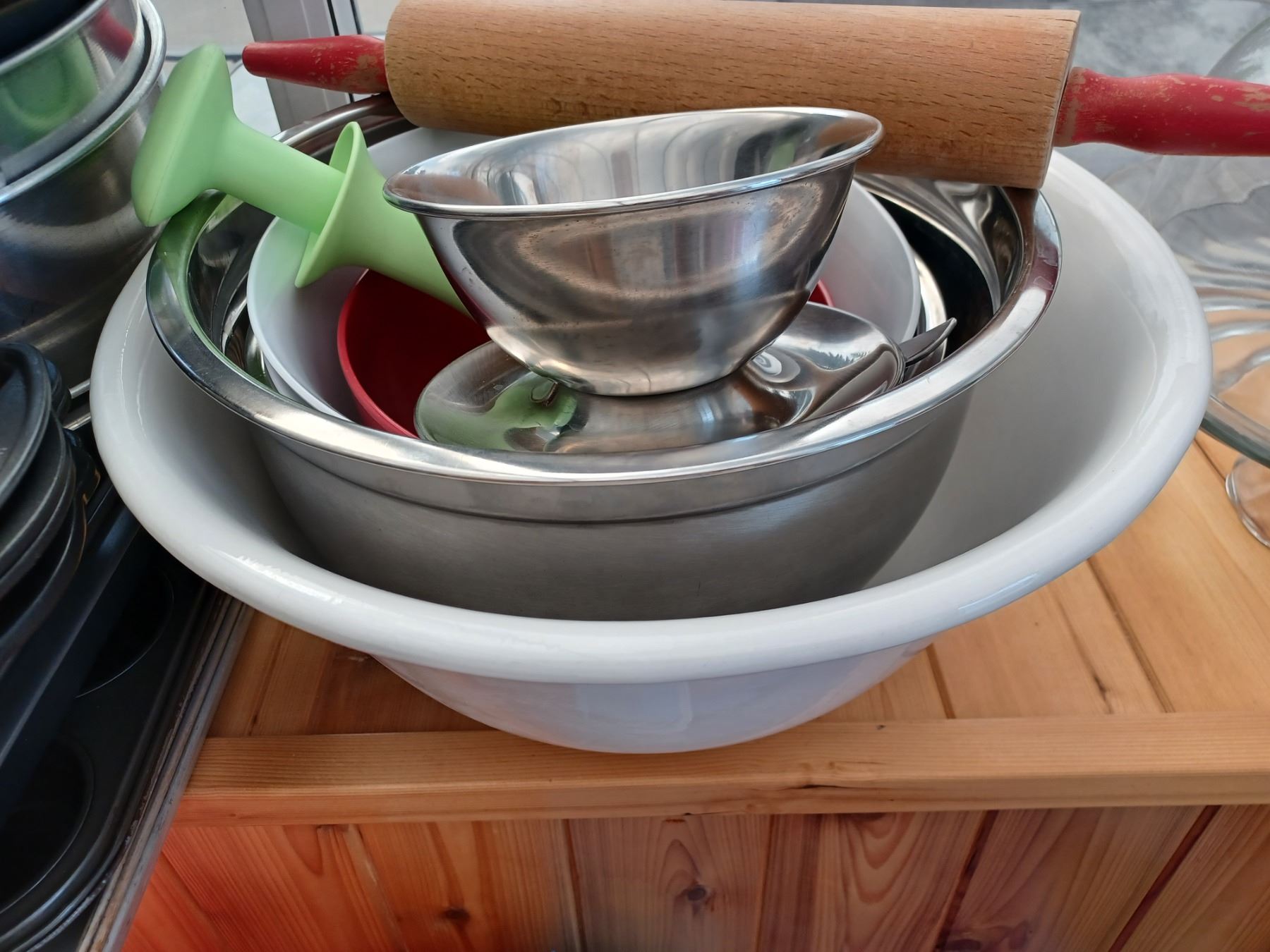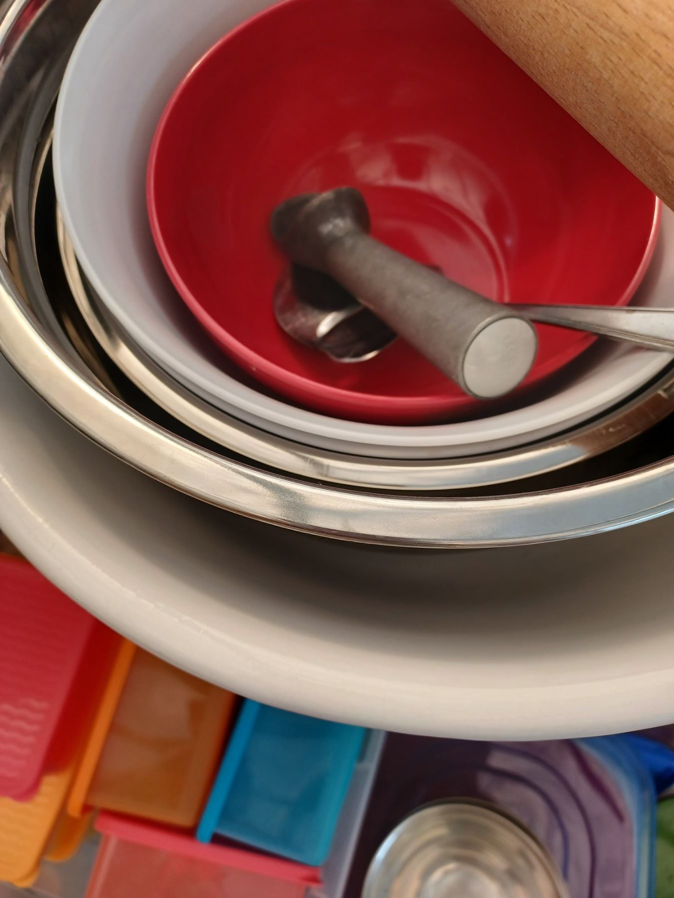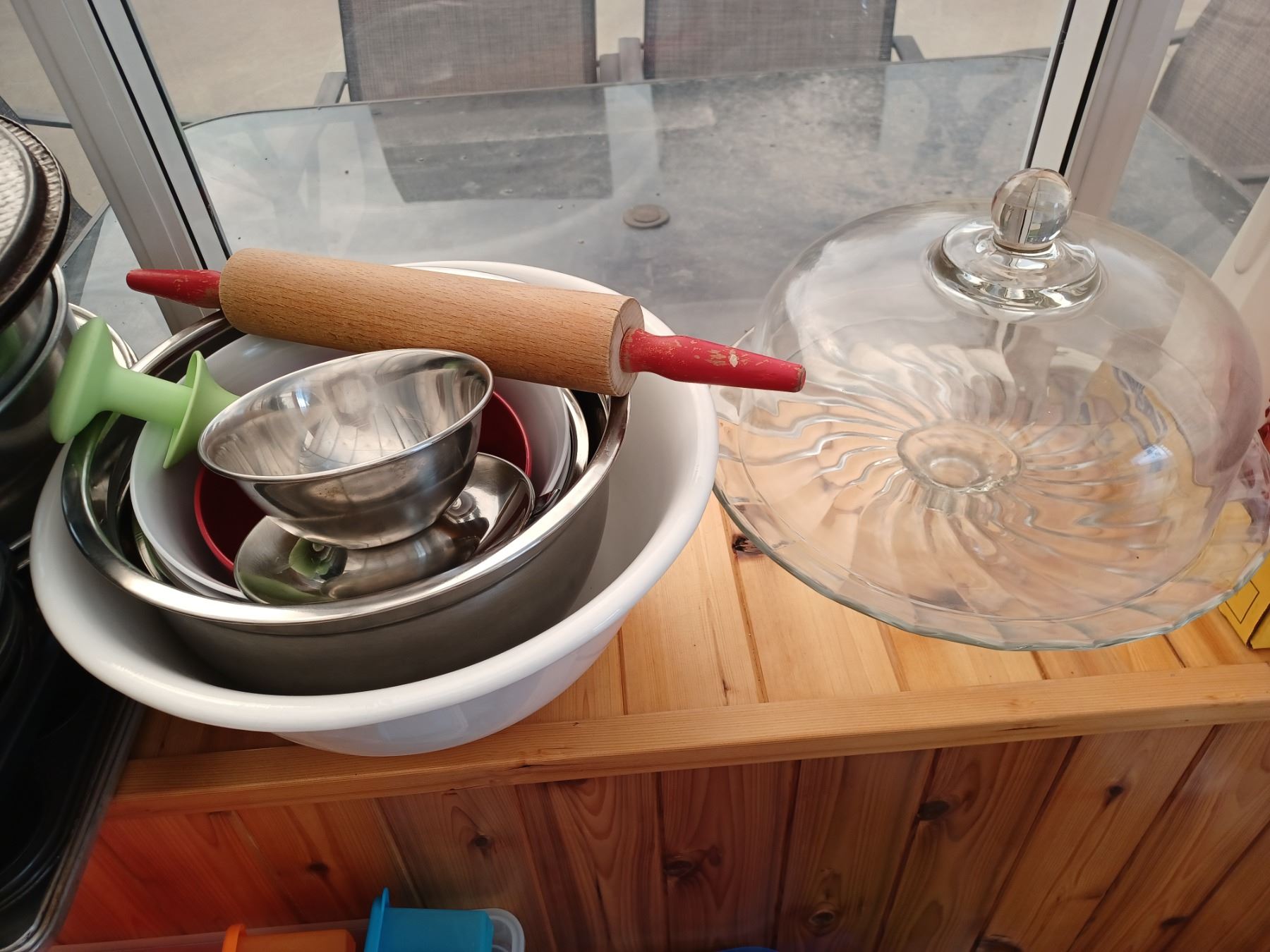 CAKE PLATTER, 16" CERAMIC BOWL AND OTHER MISC. KITCHEN WARE