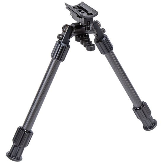 Achieve maximum accuracy with the Caldwell Accumax Carbon Fiber Bipod. The Accumax Premium Carbon Fiber Bipod attaches for easy and secure lock-up. It features quick-deployment carbon fiber legs with 90 degree forward locking method or backward method with spring-loaded buttons. The Premium Carbon Fiber Bipod also features an omni-directional ball mount for 360 degree panning, a lever lock handle for fast adjustments, and of course, twist-lock leg length adjustments.