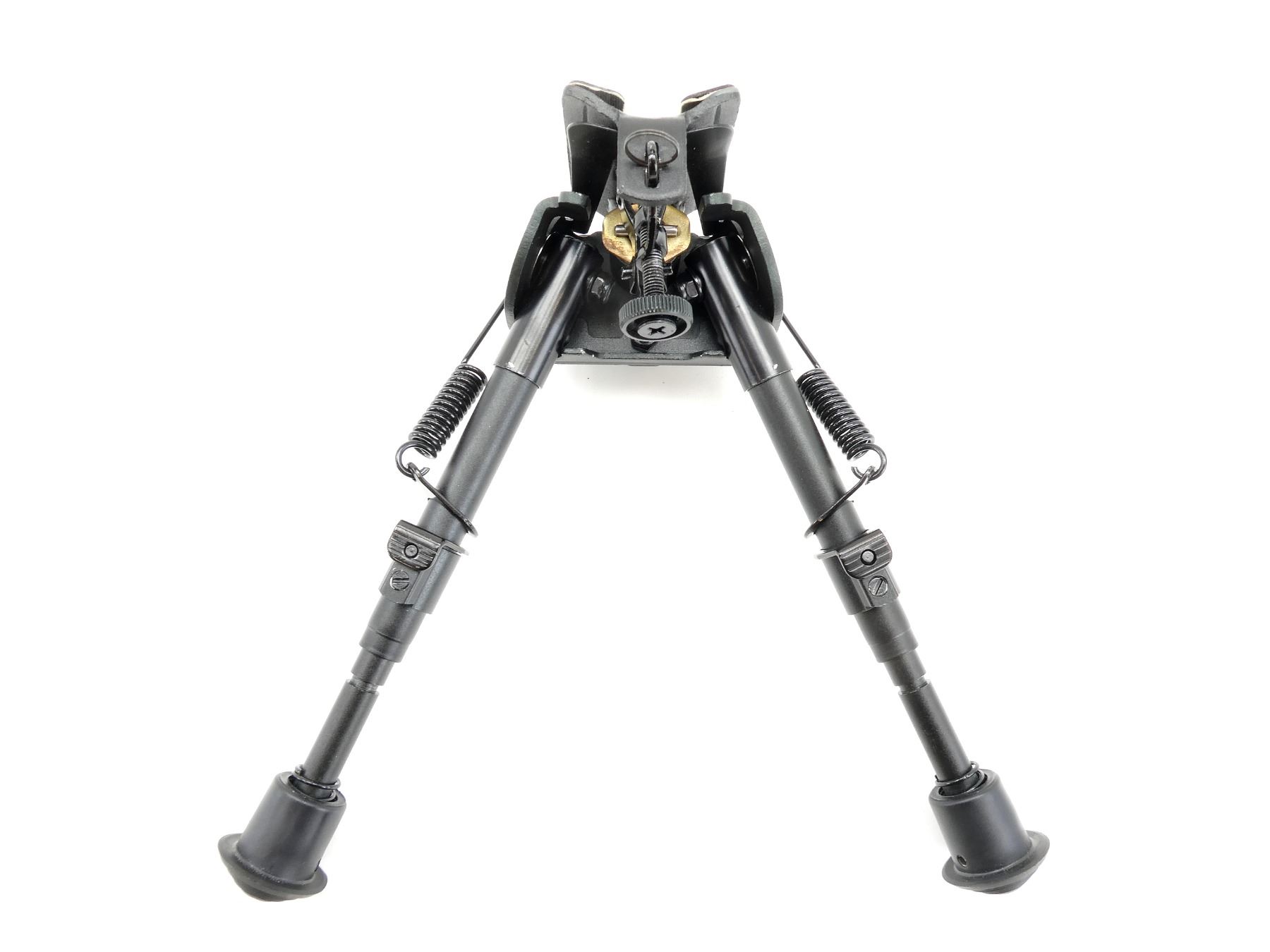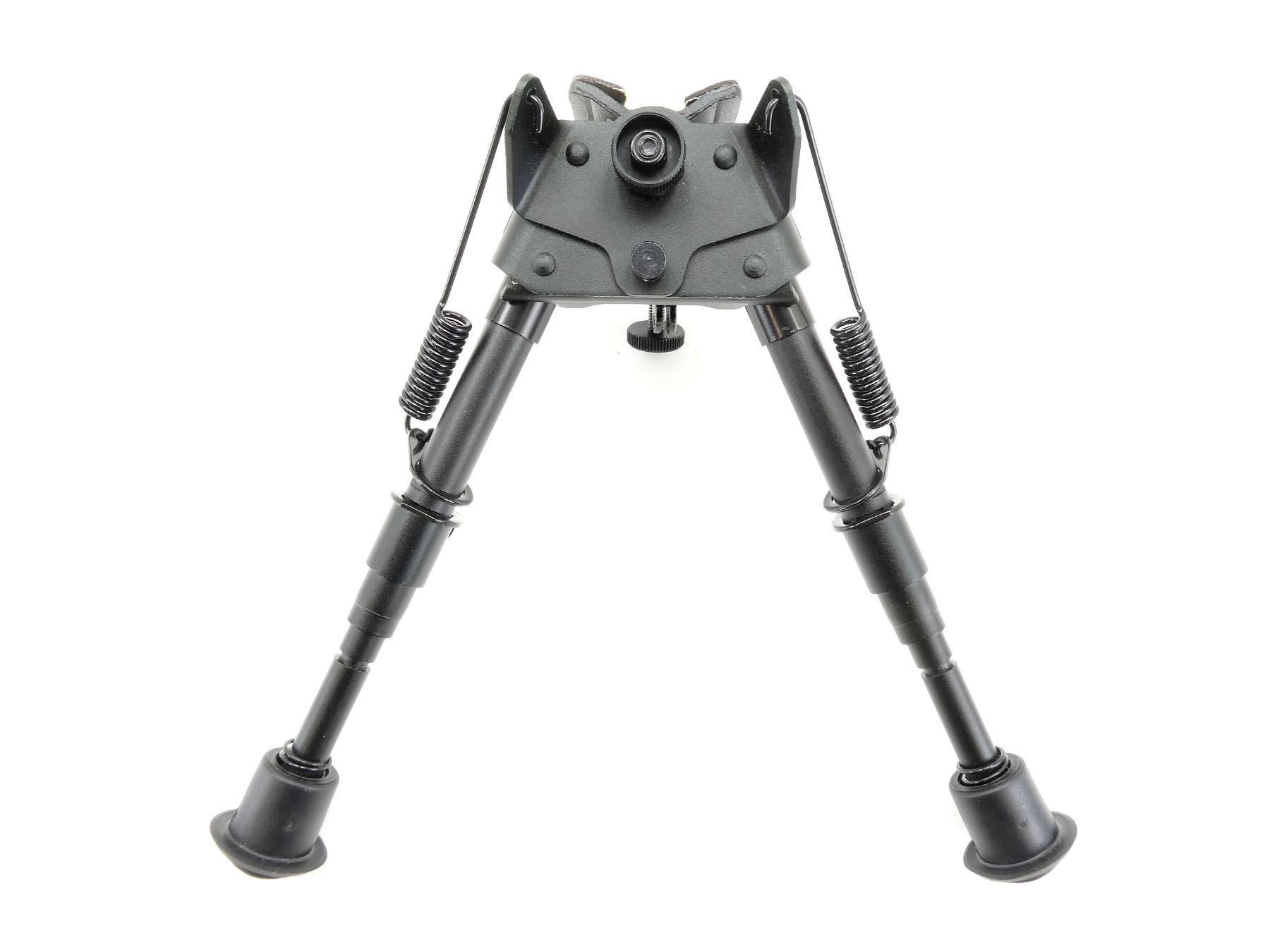 (1) BIPOD, ALUMINUM / METAL CONSTRUCTION, BLACK PAINTED, MOUNTS TO SWIVEL STUD & SLING SWIVEL, PLASTIC FEET, ADJUSTABLE LEGS, ADJUSTS FROM 6.5" TO 9.5". SEE PHOTOS.