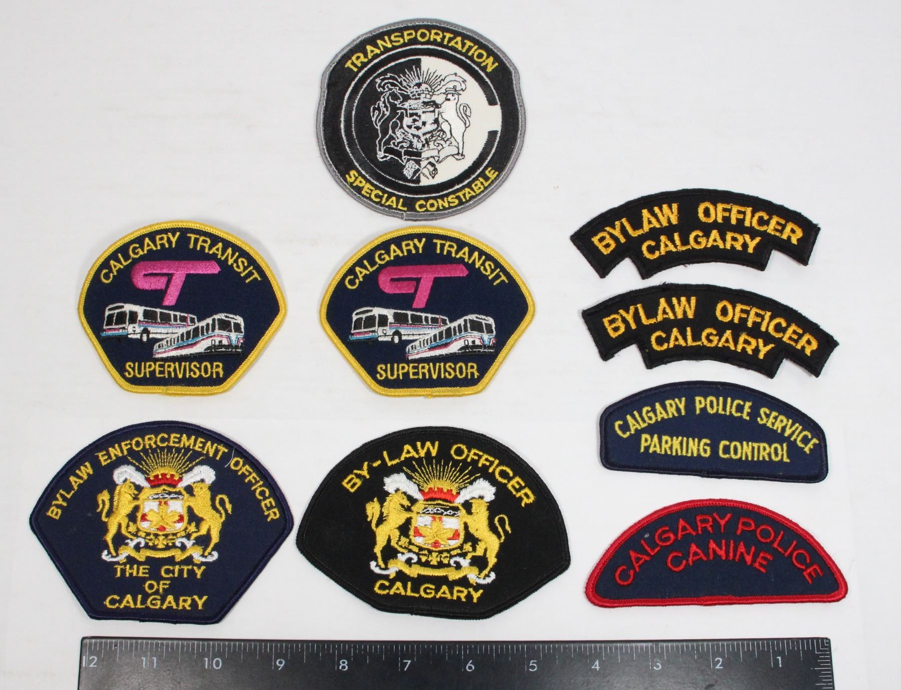 CALGARY POLICE CANINE PATCH /PARKING CONTROL, VINTAGE CALGARY TRANSIT SUPERVISOR PATCHES, AND CALGARY TRANSPORTATION SPECIAL CONSTABLE PATCH BADGE